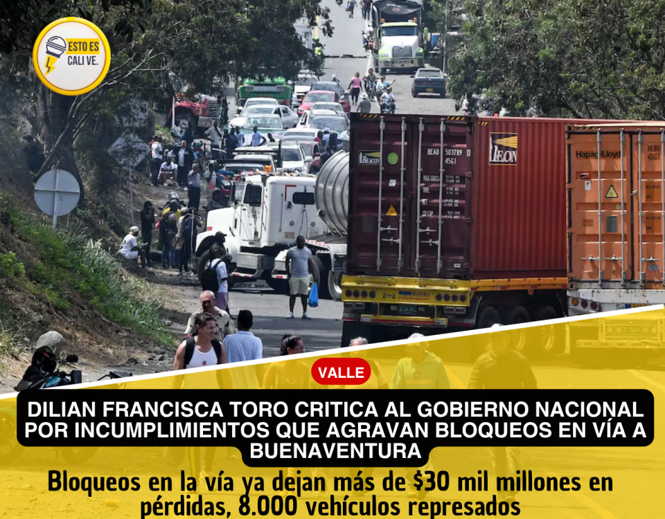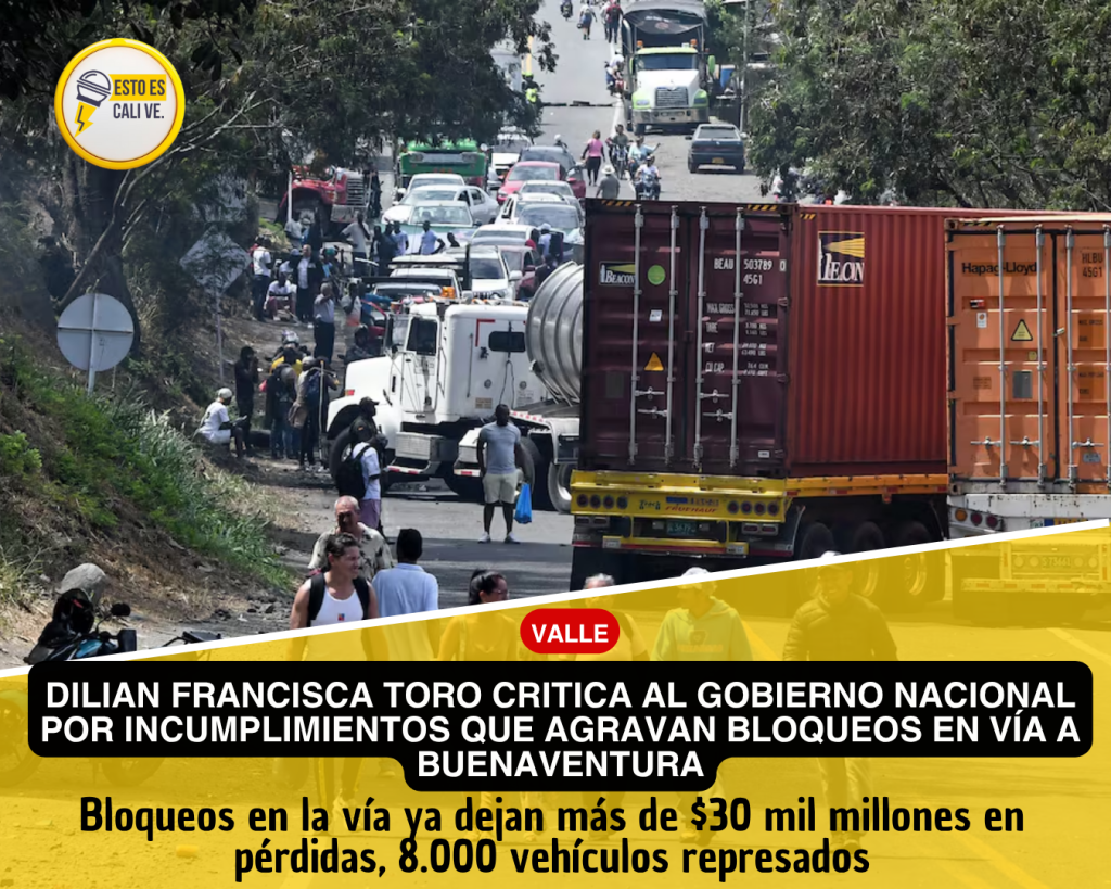 La gobernadora del Valle del Cauca, Dilian Francisca Toro, lanzó duras críticas al Gobierno Nacional tras los nuevos bloqueos en la vía que comunica a Cali con Buenaventura, una de las más importantes del país, asegurando que “el Gobierno no cumple y las regiones pagan las consecuencias”.