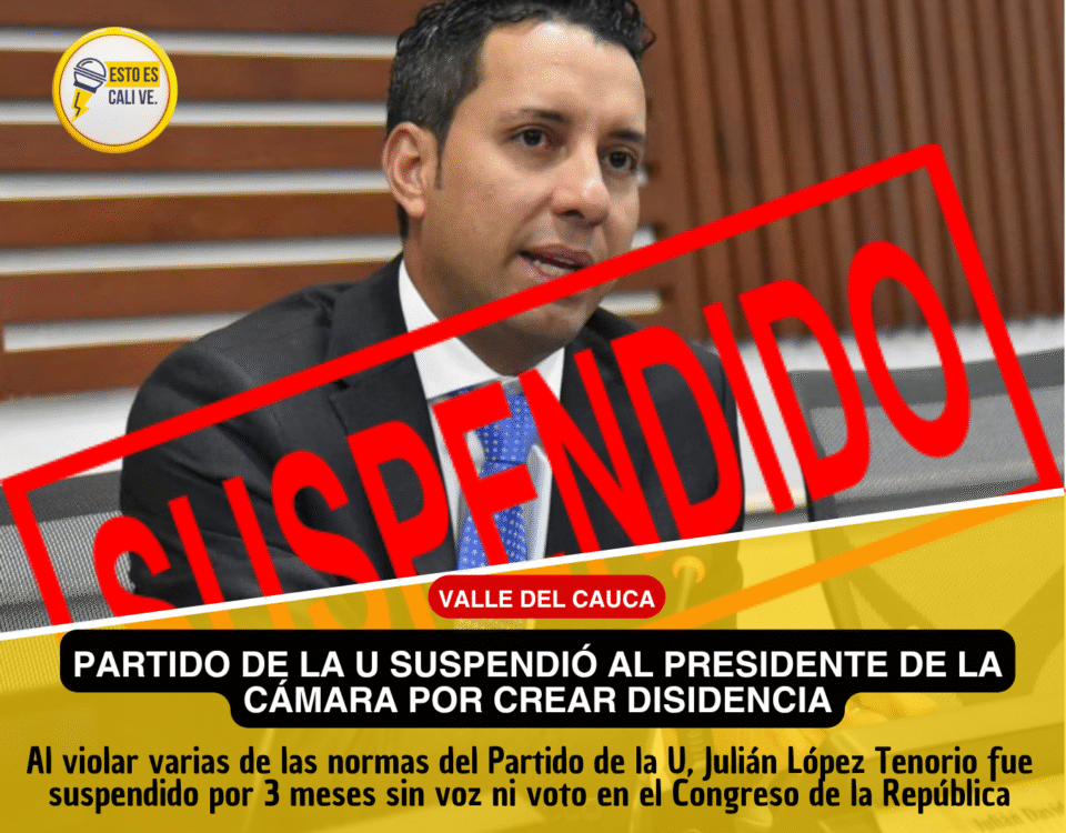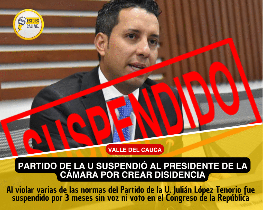 El Partido de la U anunció la suspensión provisional por tres meses del representante a la Cámara Julián David López Tenorio, quien no podrá ejercer la presidencia de las plenarias ni participar con voz o voto en las decisiones del Congreso de la República durante este periodo. La decisión fue adoptada por el Consejo Nacional Disciplinario y de Control Ético (CNDCE) tras encontrar méritos suficientes para abrir una investigación formal por faltas graves contra la militancia de la colectividad.